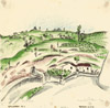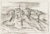 (Bildentwurf zum Gemälde „Häuser hinterm Deich“, Karsch G 78, 1964, siehe Nr. 38)