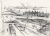 (Bildentwurf zum Aquarell „Schiffe im Dock“, Karsch A 99, 1963)
