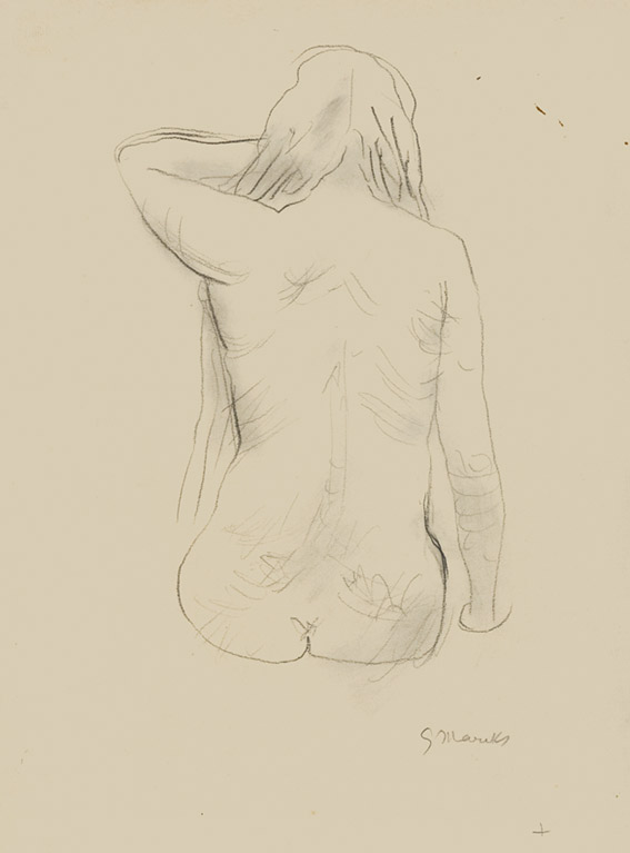 Sitzender weiblicher Rückenakt