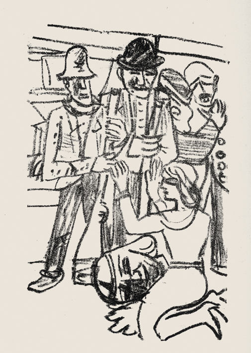 3 Max Beckmann Szene 1 (Louise Fürstin Hall kniet vor dem Kopf Apolls) Original-Lithographie, Hofmaier 323/C, 154 x 99 mm, 1937 € 450,-