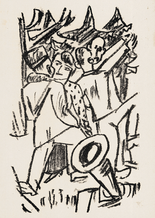4 Max Beckmann Szene 5 (Louise tanzt mit dem Pelzjäger Maurice) Original-Lithographie, Hofmaier 327/C, 157 x 100 mm, 1937 *€ 500,-