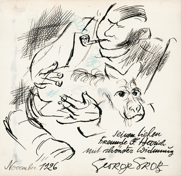 Tuschfeder und Blaustift, signiert, datiert, gewidmet, 150 x 154 mm, 1926