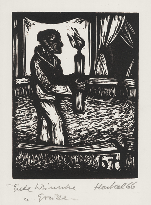 Holzschnitt, signiert, datiert, gewidmet, Dube H 456/a, 185 x 140 mm, 1966