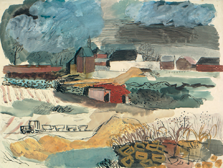 Aquarell und Federzeichnung, signiert, 493 x 650 mm, 1934 *€ 1.350,-