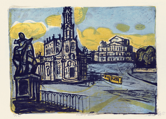 28 Otto Dix Hofkirche in Dresden Farblithographie, signiert, datiert, numeriert, bezeichnet, Karsch 212/III/B, 482 x 660 mm, 1955