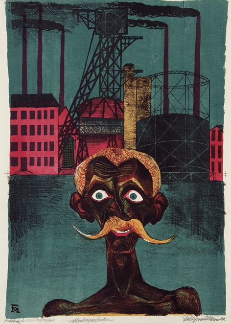 35 Conrad Felixmüller Kohlenbergarbeiter Farblithographie, Probedruck, signiert, datiert, bezeichnet, Söhn 211, 560 x 380 mm, 1920