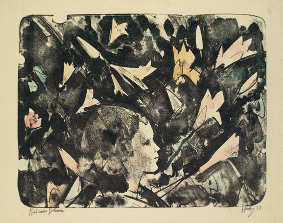 41 Otto Herbig Kind unter Blumen Lithographie, aquarelliert, signiert, datiert, bezeichnet, 374 x 480 mm, 1953