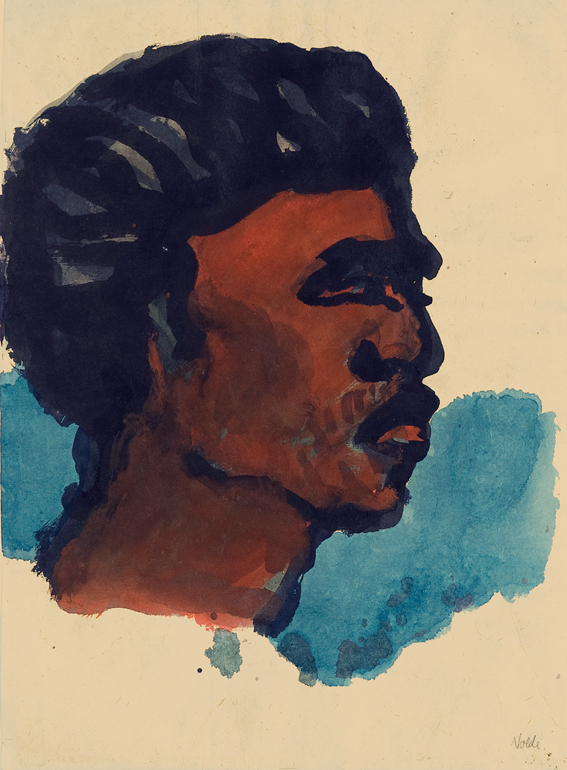 1 Emil Nolde Bildnis eines Südsee-Insulaners im Profil nach rechts (rotbraun, blauer Grund)