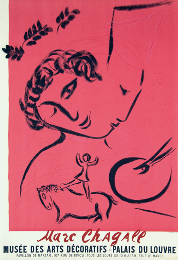 12 Marc Chagall Der Maler in Rosa (Selbstbildnis) Original-Farblithographie, Plakat, Mourlot 224, 665 x 505 mm, 1959