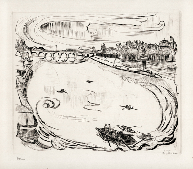 6 Max Beckmann Mainlandschaft Kaltnadel-Radierung, signiert, numeriert, Hofmaier 128 IV B b, 251 x 298 mm, 1918