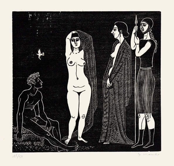 Holzschnitt auf Japan, signiert, numeriert, Lammek H 326, 294 x 310 mm, 1959
