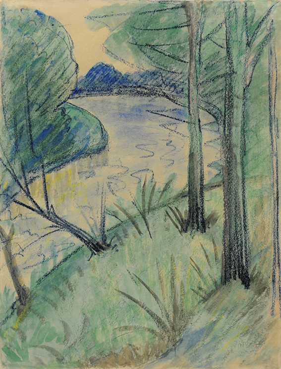 98 Otto Mueller Flußlandschaft/Waldteich mit Bäumen
