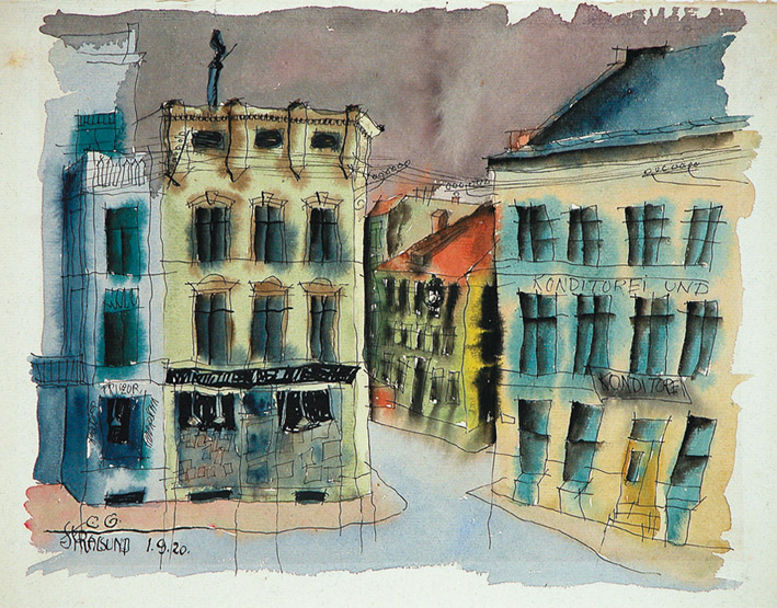 Aquarell und Feder, monogrammiert, datiert „1.9.20“, bezeichnet, 243 x 315 mm, 1920 *€ 9.000,-