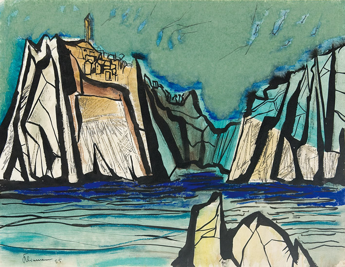 Aquarell, Kreide, Feder und Tusche, signiert, datiert, bezeichnet, Kliemann Tz 55,17, 480 x 620 mm, 1955 *€ 2.000,-