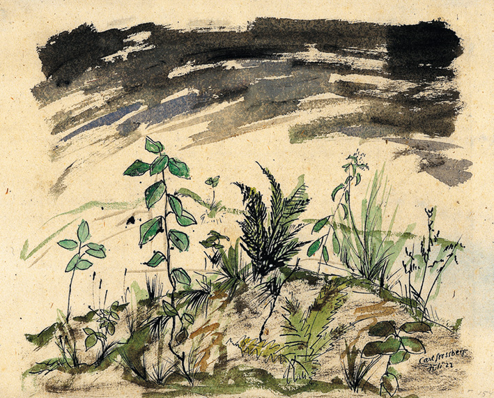 Feder und Aquarell, signiert, datiert, 285 x 350 mm, 1922 *€ 3.000,-