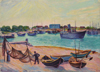 Aquarell, mit Nachlaßbestätigung, rückseitig: Boote, Aquarell,