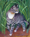22 Graugestreifte Katze zwischen Gräsern